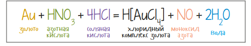 Как видите, оказывается, золото не такой уж и инертный металл. При определённых условиях золото можно перевести в раствор. Иначе было бы невозможно извлекать его из золотосодержащих руд.