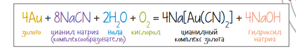 Также цианидные растворы способны растворить золото в присутствии кислорода: