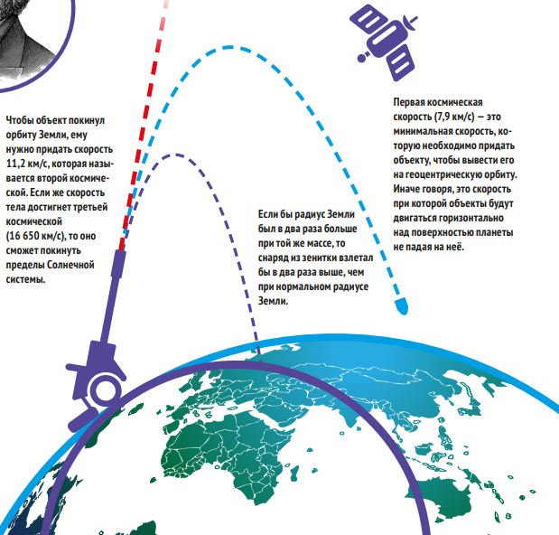 Как же рассуждал этот замечательный учёный? Попробуем восстановить ход его мыслей, а заодно — и знаменитого маркиза де Лапласа, пришедшего самостоятельно к аналогичным результатам. Предположим, у нас есть пушка, способная стрелять вертикально (сейчас подобное орудие называется зенитным, то есть стреляющим в зенит, точку небесной сферы прямо над нашей головой). На какую высоту может подняться пушечное ядро? Очевидно, что она зависит от начальной скорости снаряда, массы и радиуса Земли (именно эти параметры определяют величину ускорения свободного падения).