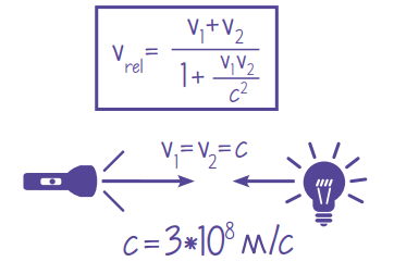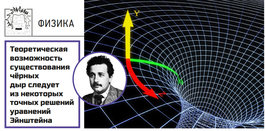 И здесь вспоминается афоризм замечательного польского сатирика Станислава Ежи Леца: «В действительности всё было не так, как на самом деле». Стройное здание физики, с таким трудом воздвигнутое учёными прошлых поколений, на деле оказалось всего лишь маленькой пристройкой к грандиозному дворцу-лабиринту мироздания, в коридорах которого мы блуждаем и по сей день. Для появления полноценной теории «чёрных дыр» понадобилось новое понимание гравитации, изложенное в теории относительности Эйнштейна. В ней практически все постулаты классической механики подверглись коренному пересмотру, вступая в очевидное противоречие с ежедневным опытом. Недаром школьная программа по физике, подробно рассматривая классические положения науки по состоянию на начало XX века, практически не касается физики релятивистской (и тем более квантовой), то есть связанной с взаимодействием на скоростях, близких к скорости света. Простейший принцип сложения скоростей и тот оказывается неверен в приложении к свету. Пусть, например, две машины едут навстречу со скоростью по 50 километров в час. С какой скоростью они движутся относительно друг друга? Ответ элементарен и абсолютно понятен: 100 км/ч, и по-другому быть просто не может. Заменим машины на лучи света (его скорость — 300 тыс. км/с). Изменилось ли что-то принципиально? Наверное, нет, но только результат будет совершенно другим: относительная скорость будет равна совсем не 600 тысячам километров в секунду, а все тем же 300 тысячам.