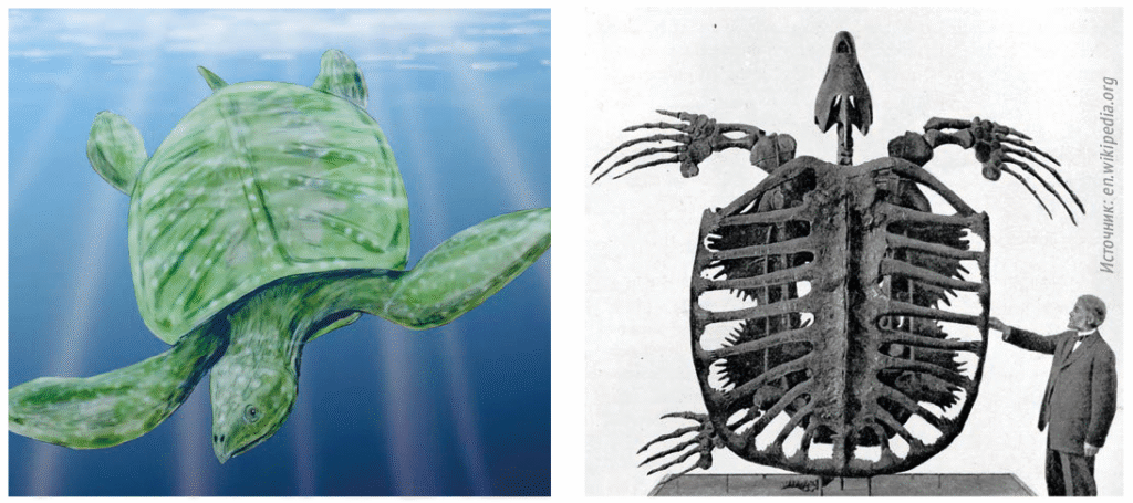 Архелон — самая крупная черепаха в истории. Длиной она была 4,6 метров, весила 2,2 тонны и жила в мезозое. Протостегиды, семейство,