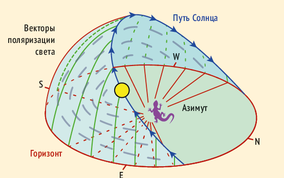 Проходя через атмосферу и отражаясь от предметов, солнечный свет поляризуется: волны в его составе становятся возможным разложить, как вектор, в разных направлениях. Те, кто способен увидеть поляризацию света (среди людей таких почти нет, а вот среди птиц и насекомых — очень многие), лучше понимают, куда двигаться. Солнечный свет становится чем-то вроде магнитного поля Земли для компаса.