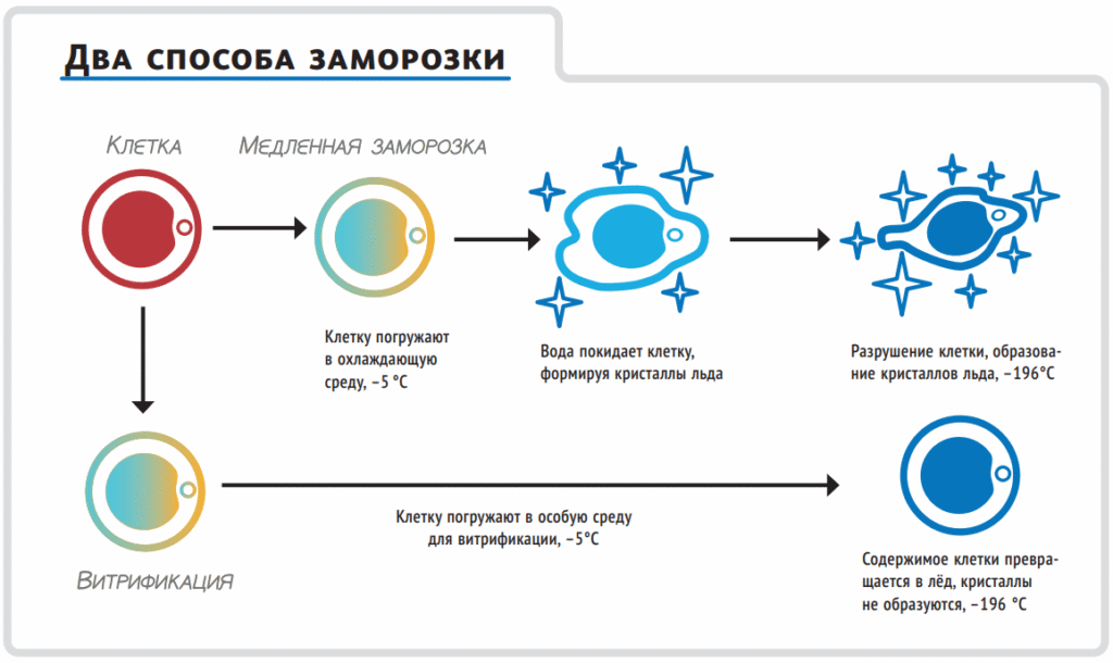 Впрочем, и медленная заморозка, и витрификация вполне безопасны — в мире уже есть дети, которые, будучи эмбрионами, провели в жидком азоте до 20 лет, и это никак не сказалось на их последующей жизни.
