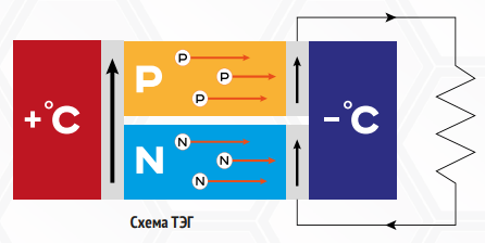 К тому же органические сенсоры, как и всё, что связано с электричеством, тесно связаны с теплообменом. У обычных металлов есть такое свойство: если нагреть кусок металла на одном конце, то электроны с нагретой стороны начнут быстрей двигаться, и в какой-то момент они начнут скапливаться на более холодной стороне. Так появится напряжение и, соответственно, электричество. Этот эффект называется эффектом Зеебека. И используется он в создании термоэлектрогенераторов — механизмов, которые вырабатывают электричество при разнице температур. Термоэлектрогенераторы (ТЭГи) являются таким же перспективным источником зелёной энергии будущего, как солнечные батареи, но применение их может варьироваться от огромной электростанции в центре Сахары (сами понимаете, чем больше разница между температурой воздуха и самого ТЭГа, тем лучше) до джинсов, которые будут заряжать ваш телефон от тепла вашего тела.