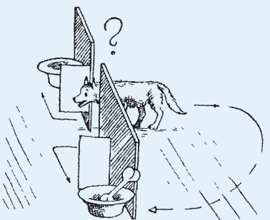 Если предмет перестаёт быть виден, это не значит, что его больше не существует («закон неисчезаемости» предметов). То есть корм, накрытый стаканчиком, можно съесть, если поднять стаканчик. Это знают вороны и попугаи, а вот голуби и куры через несколько секунд перестают искать то, что скрылось из виду.