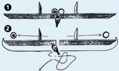 Если предмет двигался в одну сторону, а потом, не меняя направления, вышел из поля зрения, можно отправиться в ту же сторону и найти его там (закон перемещения). Этот закон позволяет решать задачи на экстраполяцию, и его понимают те, кто в курсе «неисчезаемости». Также закон говорит, что от движения самого животного может меняться положение других объектов в пространстве.