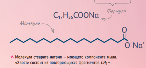 Допустим, вы ели рыбу. На поверхности рук рыбий жир, который водой ну никак не хочет отмываться. Мы наносим на руки мыло, которое содержит ПАВ — стеарат натрия.