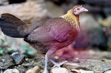 Банкивская (красная) джунглевая курица, обитающая на востоке Индии, в Индокитае и на прилегающих островах