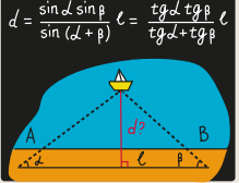 ТРИАНГУЛЯЦИЯ НА ПРАКТИКЕ Представьте, что вам необходимо определить расстояние (d) от одного берега до недоступной точки на корабле. Ниже мы приведём алгоритм необходимых для этого действий.