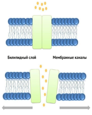 Когда части мембраны расходятся, они тянут за собой составляющие канала. Последние раздвигаются, и между ними образуется пространство, через которое способны пройти заряженные частицы.