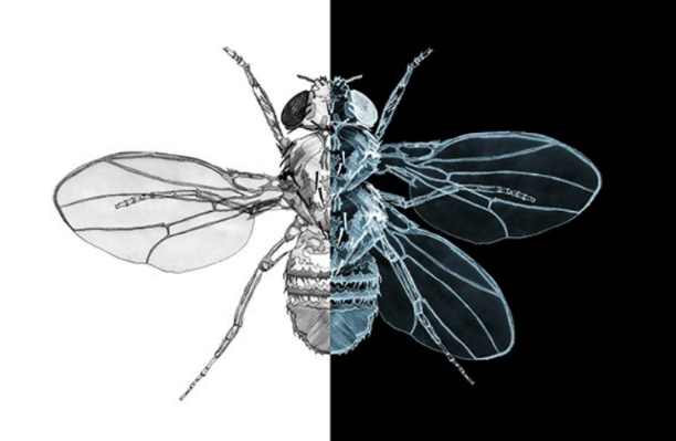 Нормальная муха (слева) и насекомое с мутацией в гене ultrabithorax (справа). Видно, что муха-мутант имеет не одну, а две пары крыльев.