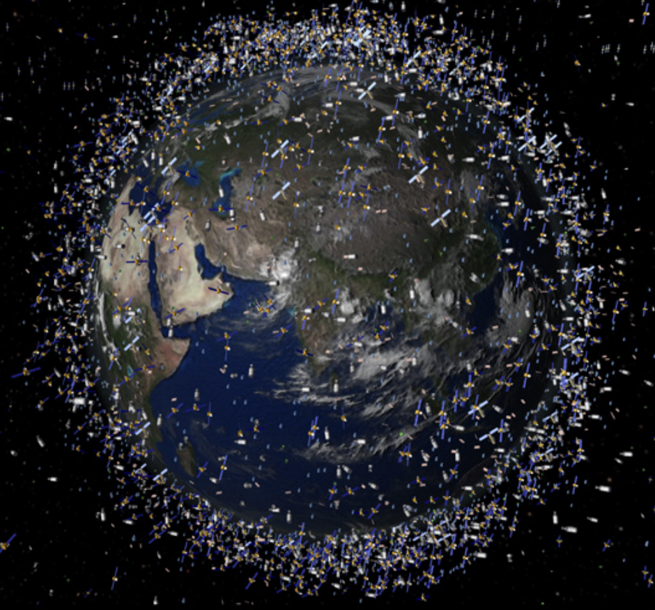 Иллюстрация наглядно показывает несметное количество спутников на околоземной орбите. Больше 90% из них — космический мусор. Настоящее минное поле!