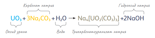Альтернативой активного вещества для подземного выщелачивания могут быть содовые растворы на основе карбонатов калия, натрия или аммония. Добыча так и называется — содовое или карбонатное выщелачивание. При таком методе в недрах Земли происходит следующая реакция: